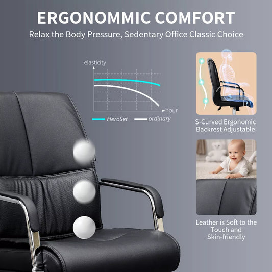 Efomao Ergonomic Big and Tall Office Chair, High Back PU Leahter Computer Chair, Wide Seat Executive Desk Chair with Footrest and Lumbar Support