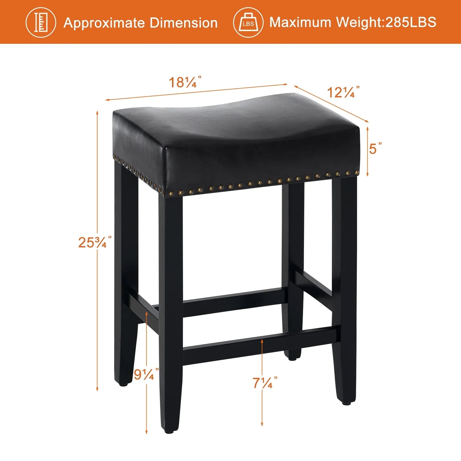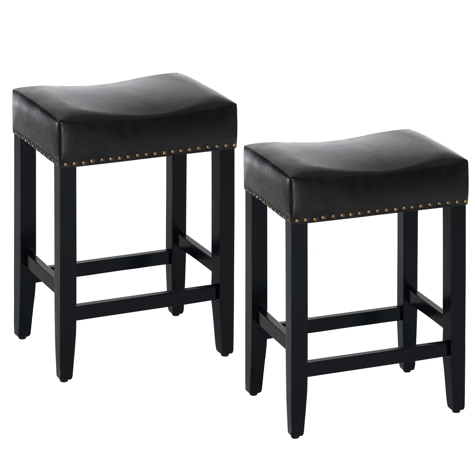 Furniliving Modern Backless Counter Stool Rubber Wood Saddle Seat Stool Kitchen Counter Bar Stool,Set of 2,Black