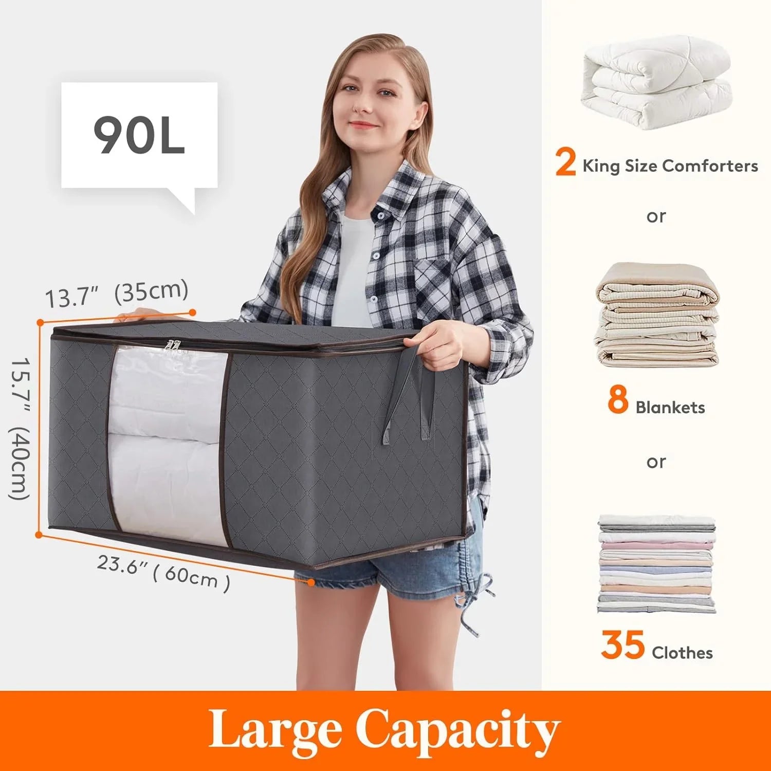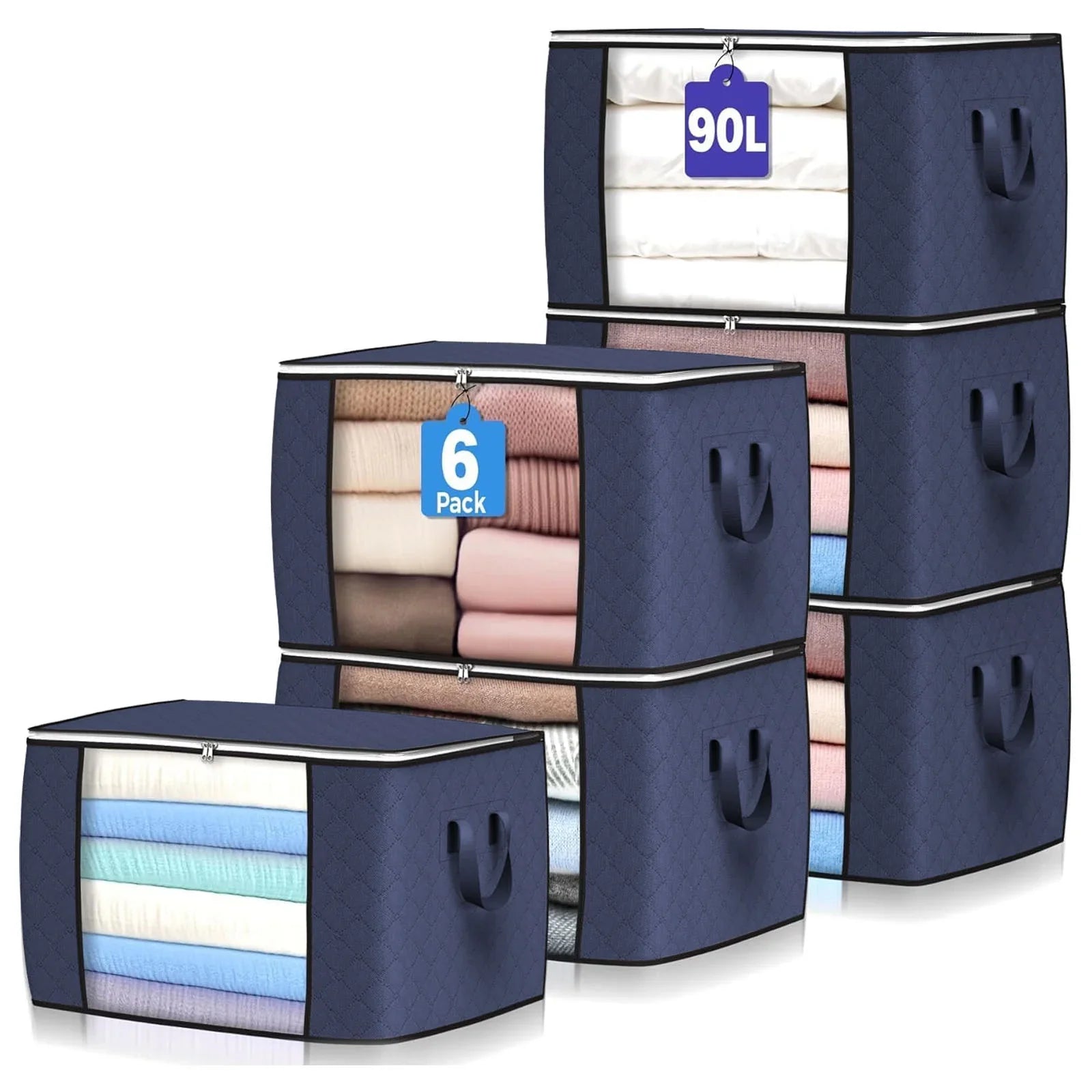 Uiz Merueh 6 Pack Clothes Storage Bags, 24 Gallon Storage Containers with Reinforced Handle Sturdy Zipper, Closet Storage for Blanket Comforter Pillow Bedding