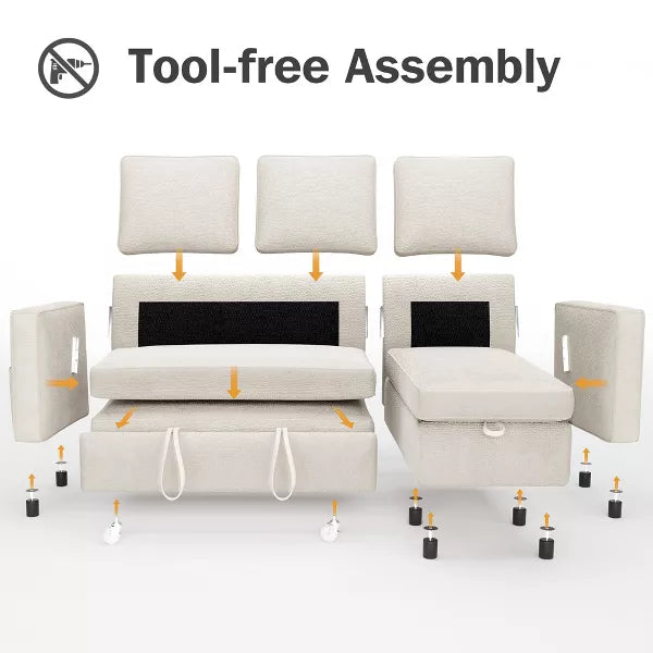 Vipbear 81" Sleeper Sofa Bed, 2 in 1 Pull Out Couch with Reversible Storage Chaise